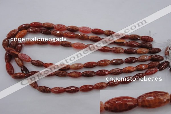 15.5 inches strand of 8*16mm faceted rice natural fire agate gemstone beads wholesale
