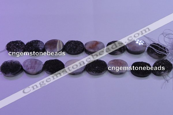 CAG8197 7.5 inches 18*25mm oval black plated druzy agate beads