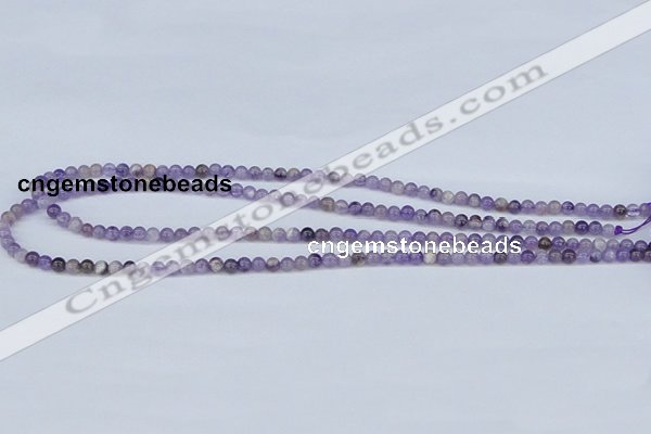 Details: 15.5 inches strand of 4mm round dogtooth amethyst quartz beads wholesale Item: CDA50 Material: Dogtooth Amethyst Shape: round Color: See image Size (mm): approx 4mm Length (inch): approx 15.5" per strand Quantity: approx 102 beads per strand Quantity Discount Pricing: 1 – 4: None 5 – 49: 95% 50 – 99: 90% 100+: 85% The listed price is for one strand beads |