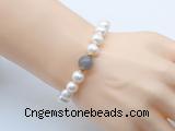 Details: Fashion pearl bracelet: 9mm - 10mm potato white freshwater pearls & 12mm round grey agate beaded bracelet finished with copper spring ring clasp (Style No.4) Item: CFB1035 Material: 9-10mm potato white freshwater pearls 12mm round grey agate beads 2*5mm copper spacers (No.4) Color: See image Style: No.1-No.3: Stretchy No.4-No.6: Hand-knotted (you can choose different style, spacer & clasp. if you like other style, clasp, spacer or other quality/size potato white freshwater pearls we don't show, please contact us before you placing order) Length (inch): Approx 7.5 inch (Default) You can choose 6.5”; 7”; 7.5”; 8”; 8.5”; 9” or 9.5”