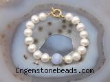CFB1075 Hand-knotted 9mm - 10mm potato white freshwater pearl & blue lace agate bracelet  $8.00  $7.20 Discount: 10%