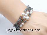Buy 1 'CFB829 4mm faceted round snowflake obsidian & potato white freshwater pearl bracelet' now