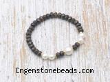 Details: Fashion gemstone & pearl bracelet: 4*6mm faceted rondelle bronzite, 7-8mm & 10-11mm potato white freshwater pearl stretchy bracelet jewelry Item: CFB756 Material: 4*6mm faceted rondelle bronzite 7-8mm & 10-11mm potato white freshwater pearls 1.5*4mm copper spacers (you can choose different spacer) Color: See image Length (inch): Approx 7.5 inch (Default) You can choose 6.5”; 7”; 8”; 8.5”; 9” or 9.5”