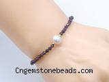 Details: Fashion gemstone & pearl bracelet: 4mm faceted round tiny garnet & 10 - 11mm potato white freshwater pearl beaded bracelet Item: CFB814 Material: 4mm faceted round garnet 10-11mm potato white freshwater pearls 1.5*4mm copper spacers 7*12m copper lobster clasp(Style #2) (you can choose different spacer & clasp, if you like sterling silver clasp, other clasp or better quality potato white freshwater pearls we don't show, please contact us before you placing order) Color: See image Style: No.1: Stretchy bracelet (Default) No.2: Adjustable bracelet Length (inch): Approx 6 inch You can choose 6.5”; 7”; 7.5”; 8”; 8.5” or 9” Quantity Discount Pricing: 1 - 4: None 5 - 49: 95% 50 - 99: 90% 100+: 85%