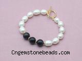 Details: Fashion pearl bracelet: 9mm - 10mm rice white freshwater pearls & 10mm round black obsidian beaded bracelet finished with copper OT clasp (Style No.5) Item: CFB976 Material: 9-10mm rice white freshwater pearls 10mm round black obsidian beads 1.5*4mm copper spacers (No.2) Color: See image Style: No.1-No.3: Stretchy No.4-No.6: Hand-knotted (you can choose different style, spacer & clasp. if you like other style, clasp, spacer or other quality/size rice white freshwater pearls we don't show, please contact us before you placing order) Length (inch): Approx 7.5 inch (Default) You can choose 6.5”; 7”; 7.5”; 8”; 8.5”; 9” or 9.5”