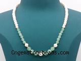 Details: Fashion pearl necklace: 5mm - 6mm potato white freshwater pearls & green aventurine beaded necklace finished with copper lobster clasp Item: CFN111 Material: 5-6mm, 8-9mm & 10-11mm potato white freshwater pearls 6mm & 8mm round green aventurine 1.5*4mm copper spacers Copper lobster clasp(#3) (you can choose different spacer & clasp, if you like sterling silver clasp or other clasp we don't show, please contact us before you placing order) Color: See image Style: No.1: Non-knotted (Default) No.2: Hand-knotted Length (inch): Approx 16 inch (Default, Include the clasp, but not including Tail Chain) You can choose 17”; 18”; 19”; 20”; 22” or 24”