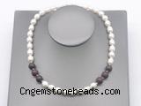 CFN754 9mm - 10mm potato white freshwater pearl & pink wooden jasper necklace