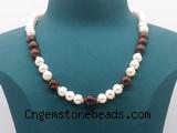 Details: Fashion pearl necklace: 16 - 24 inches 9mm - 10mm potato white freshwater pearls & mahogany obsidian beaded necklace finished with copper spring ring clasp Item: CFN540 Material: 9-10mm potato white freshwater pearls 10mm & 12mm round mahogany obsidian beads 2*5mm copper spacers (No.4) 11mm copper spring ring clasp (you can choose different spacer & clasp, if you like sterling silver clasp, other clasp or better quality potato white freshwater pearls we don't show, please contact us before you placing order) Color: See image Style: No.1: Non-knotted (Default) No.2: Hand-knotted Length (inch): Approx 16 inch (16-17”, Default) You can choose 17”(17-18”); 18”(18-19”); 19”(19-20”); 20”(20-21”); 22”(22-23”) or 24”(24-25”)