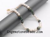 Details: Fashion pearl necklace: 16 - 24 inches 9mm - 10mm potato white freshwater pearls & African turquoise beaded necklace finished with copper spring ring clasp Item: CFN549 Material: 9-10mm potato white freshwater pearls 10mm & 12mm round African turquoise beads 2*5mm copper spacers (No.4) 11mm copper spring ring clasp (you can choose different spacer & clasp, if you like sterling silver clasp, other clasp or better quality potato white freshwater pearls we don't show, please contact us before you placing order) Color: See image Style: No.1: Non-knotted (Default) No.2: Hand-knotted Length (inch): Approx 16 inch (16-17”, Default) You can choose 17”(17-18”); 18”(18-19”); 19”(19-20”); 20”(20-21”); 22”(22-23”) or 24”(24-25”)