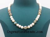 Details: Fashion pearl necklace: 16 - 24 inches 9mm - 10mm potato white freshwater pearls & serpentine jasper beaded necklace finished with copper spring ring clasp Item: CFN557 Material: 9-10mm potato white freshwater pearls 10mm & 12mm round serpentine jasper beads 2*5mm copper spacers (No.4) 11mm copper spring ring clasp (you can choose different spacer & clasp, if you like sterling silver clasp, other clasp or better quality potato white freshwater pearls we don't show, please contact us before you placing order) Color: See image Style: No.1: Non-knotted (Default) No.2: Hand-knotted Length (inch): Approx 16 inch (16-17”, Default) You can choose 17”(17-18”); 18”(18-19”); 19”(19-20”); 20”(20-21”); 22”(22-23”) or 24”(24-25”)