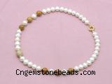 CFN758 9mm - 10mm potato white freshwater pearl & wooden jasper necklace  $18.60  $16.74 Discount: 10%