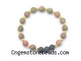 Details: Fashion gemstone bracelet: 8mm round matte unakite & black lava beaded healing power stretch bracelet wholesale Item: CGB8190 Material: No.1: matte unakite & alloy spacer No.2, No.3: matte unakite, black lava & alloy spacer (you can choose different spacer, if you don’t need the spacer, please choose No) Color: See image Size (mm): 8mm & 4mm Length (inch): approx 7.5 inches(Default, approx 7.4 - 7.7 inches) You can choose 6.5 inches (approx 6.4 - 6.7 inches 7 inches (approx 6.9 - 7.2 inches 8 inches (approx 7.9 - 8.2 inches 8.5 inches (approx 8.4 - 8.7 inches) Quantity Discount Pricing: 1 – 4: No 5 – 49: 95% 50 – 99: 90% 100+: 85% The listed price is for 1 piece bracelet