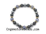 Details: Energy healing bracelet: 8mm round blue spot stone, black onyx, hematite & 3x6mm rondelle hematite beaded stretchy bracelet jewelry wholesale Item: CGB8378 Material: Round blue spot stone Round black onyx & hematite set (you can choose different bead sets #1 - #37 Rondelle hematite (you can choose different color/size rondelle hematite) Color: See image Size (mm): 8mm & 3*6mm Length (inch): approx 7.5 inches Quantity Discount Pricing: 1 – 4: No 5 – 49: 95% 50 – 99: 90% 100+: 85% The listed price is for 1 piece bracelet
