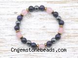 Details: Energy healing bracelet: 8mm round rose quartz, purple tiger eye, hematite & 3x6mm rondelle hematite power beads bracelet wholesale Item: CGB8511 Material: Round purple tiger eye, hematite set Round rose quartz (you can choose different beads #1 - #82) Rondelle hematite (you can choose different color/size rondelle hematite) Color: See image Size (mm): 8mm & 3*6mm Length (inch): approx 7.5 inches Quantity Discount Pricing: 1 – 4: No 5 – 49: 95% 50 – 99: 90% 100+: 85% The listed price is for 1 piece bracelet