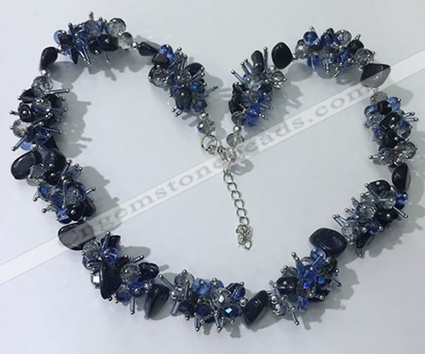 Details: Agate beaded necklace jewelry: 5*8mm - 10*15mm chips black agate gemstone beads,5*8mm faceted rondelle chinese crystal beads,ended with brass lobster clasp Item: CGN412 Material: black agate & chinese crystal Shape: See image Color: See image Length (inch): approx 19” – 20” Quantity Discount Pricing: 1 – 4: None 5 – 49: 95% 50 – 99: 90% 100+: 85% The listed price is for one necklace The color & size of the product may vary, we will send your orders randomly according to our stock. |