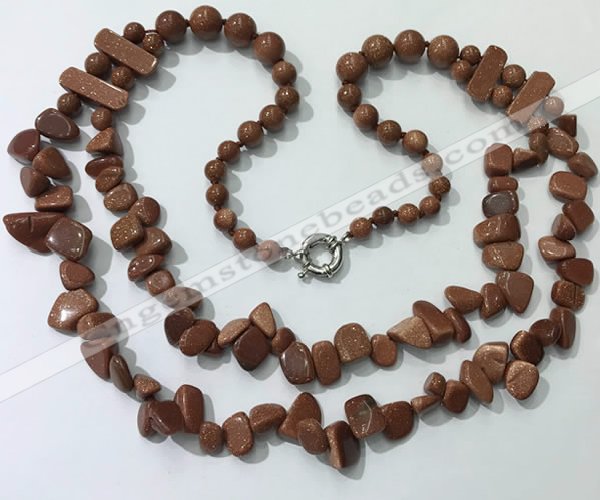 Details: Goldstone beaded necklace jewelry: 6mm - 10mm round, 10x25mm rectangle & 6*10mm - 12*15mm chips goldstone beads, ended with brass spring ring clasp Item: CGN541 Material: goldstone Shape: See image Color: See image Length (inch): approx 27” – 27.5” Quantity Discount Pricing: 1 - 4: None 5 - 49: 95% 50 - 99: 90% 100+: 85% The listed price is for one necklace The color & size of the product may vary, we will send your orders randomly according to our stock. |
