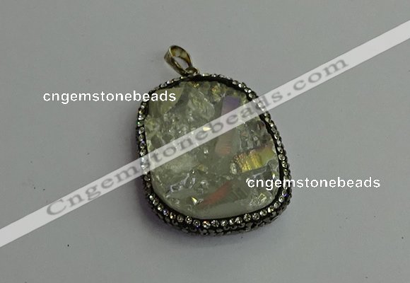 Details: Gemstone pendant jewelry: 30*40mm - 35*45mm freeform plated white crystal gemstone with rhinestone brass setting pendants wholesale Item: CGP375 Material: white crystal Shape: freeform Color: See image Size(mm): approx 30*40mm - 35*45mm (Hole: approx 5mm) Quantity Discount Pricing: 1 – 4: None 5 – 49: 95% 50 – 99: 90% 100+: 85% The listed price is for one pendant The pictures of this item on our website are just a reference to tell you that they are in mixed colors and/or mixed shapes. However, the colors or shapes we get from the factory may vary each time, so we will send your orders randomly according to our stock. |