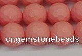 CSB1995 15.5 inches 14mm faceted round matte shell pearl beads