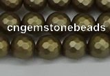 CSB1833 15.5 inches 10mm faceetd round matte shell pearl beads