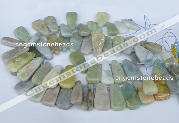 Details: 15.5 inches strand of 10*20mm - 15*45mm freeform aquamarine gemstone beads wholesale Item: CTD3637 Material: aquamarine Shape: freeform Color: See image Size (mm): approx 10*20mm - 15*45mm Length (inch): approx 15.5” per strand Quantity Discount Pricing: 1 – 4: None 5 – 49: 95% 50 – 99: 90% 100+: 85% The listed price is for one strand beads The color & size of the product may vary, we will send your orders randomly according to our stock. |