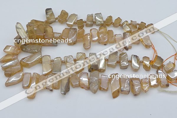Details: 15.5 inches strand of 8*15mm - 11*30mm sticks plated white crystal gemstone beads wholesale Item: CTD3659 Material: white crystal Shape: sticks Color: See image Size (mm): approx 8*15mm - 11*30mm Length (inch): approx 15.5” per strand Quantity Discount Pricing: 1 – 4: None 5 – 49: 95% 50 – 99: 90% 100+: 85% The listed price is for one strand beads The color & size of the product may vary, we will send your orders randomly according to our stock. |