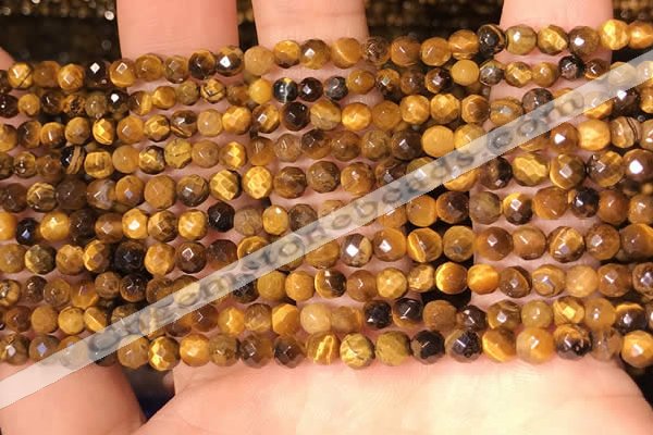CTG1559 15.5 inches 4mm faceted round yellow tiger eye beads