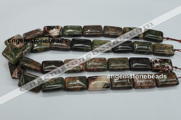 Details: 15 inches strand of 18*25mm rectangle autumn jasper gemstone beads wholesale Item: CUJ06 Material: autumn jasper Shape: rectangle Color: See image Size (mm): approx 18*25mm Length (inch): approx 15.5" per strand Quantity: approx 16 beads per strand Quantity Discount Pricing: 1 – 4: None 5 – 49: 95% 50 – 99: 90% 100+: 85% The listed price is for one strand beads |