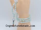 Details: Hand-knotted agate mala necklaces: 108 8mm/10mm round sea blue banded agate beads with 1 12mm guru bead and opalite pendant (you can choose different pendants) Item: GMN1420 Material: No.1(8mm: 108 8mm sea blue banded agate beads, 12mm guru bead & opalite pendant No.2(10mm: 108 10mm sea blue banded agate beads, 12mm guru bead & opalite pendant Color: See image Length (inch): Necklace length: No.1(8mm: approx 37 - 40 inches (Not including guru bead & pendant) No.2(10mm: approx 46 - 50 inches (Not including guru bead & pendant) Pendants: #1 - #8: approx 20*50mm – 22*55mm #9 - #23: approx 16*50mm – 16*55mm #24 - #30: approx 17*55mm – 17*58mm #31 - #39: approx 25*68mm – 25*70mm Quantity Discount Pricing: 1 – 4: None 5 – 49: 95% 50 – 99: 90% 100+: 85% This mala is available in both 8mm and 10mm beads, The listed price is for 1 piece 8mm mala necklace