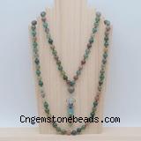 Details: Hand-knotted agate mala necklaces: 108 8mm/10mm round Indian agate beads with 1 12mm guru bead and green aventurine pendant (you can choose different pendants) Item: GMN1425 Material: No.1(8mm: 108 8mm Indian agate beads, 12mm guru bead & green aventurine pendant No.2(10mm: 108 10mm Indian agate beads, 12mm guru bead & green aventurine pendant Color: See image Length (inch): Necklace length: No.1(8mm: approx 37 - 40 inches (Not including guru bead & pendant) No.2(10mm: approx 46 - 50 inches (Not including guru bead & pendant) Pendants: #1 - #8: approx 20*50mm – 22*55mm #9 - #23: approx 16*50mm – 16*55mm #24 - #30: approx 17*55mm – 17*58mm #31 - #39: approx 25*68mm – 25*70mm Quantity Discount Pricing: 1 – 4: None 5 – 49: 95% 50 – 99: 90% 100+: 85% This mala is available in both 8mm and 10mm beads, The listed price is for 1 piece 8mm mala necklace