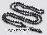 Details: Hand-knotted obsidian mala necklaces: 108 8mm/10mm round golden obsidian beads with 1 12mm guru bead and obsidian pendant (you can choose different pendants) Item: GMN1475 Material: No.1(8mm: 108 8mm golden obsidian beads, 12mm guru bead & obsidian pendant No.2(10mm: 108 10mm golden obsidian beads, 12mm guru bead & obsidian pendant Color: See image Length (inch): Necklace length: No.1(8mm: approx 37 - 40 inches (Not including guru bead & pendant) No.2(10mm: approx 46 - 50 inches (Not including guru bead & pendant) Pendants: #1 - #8: approx 20*50mm – 22*55mm #9 - #23: approx 16*50mm – 16*55mm #24 - #30: approx 17*55mm – 17*58mm #31 - #39: approx 25*68mm – 25*70mm Quantity Discount Pricing: 1 – 4: None 5 – 49: 95% 50 – 99: 90% 100+: 85% This mala is available in both 8mm and 10mm beads, The listed price is for 1 piece 8mm mala necklace