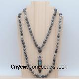 Details: Hand-knotted jasper mala necklaces: 108 8mm/10mm round black water jasper beads with 1 12mm guru bead and obsidian pendant (you can choose different pendants) Item: GMN1534 Material: No.1(8mm: 108 8mm black water jasper beads, 12mm guru bead & obsidian pendant No.2(10mm: 108 10mm black water jasper beads, 12mm guru bead & obsidian pendant Color: See image Length (inch): Necklace length: No.1(8mm: approx 37 - 40 inches (Not including guru bead & pendant) No.2(10mm: approx 46 - 50 inches (Not including guru bead & pendant) Pendants: #1 - #8: approx 20*50mm – 22*55mm #9 - #23: approx 16*50mm – 16*55mm #24 - #30: approx 17*55mm – 17*58mm #31 - #39: approx 25*68mm – 25*70mm Quantity Discount Pricing: 1 – 4: None 5 – 49: 95% 50 – 99: 90% 100+: 85% This mala is available in both 8mm and 10mm beads, The listed price is for 1 piece 8mm mala necklace