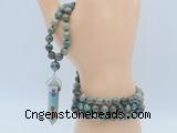 GMN4875 Hand-knotted 8mm, 10mm amazonite 108 beads mala necklace with pendant