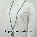 Details: Hand-knotted agate mala necklaces: 108 8mm/10mm round moss agate beads with 1 12mm guru bead and satin tassel & alloy charm (you can choose different tassels & charms) Item: GMN1761 Material: No.1(8mm: 108 8mm moss agate, 12mm guru bead, satin tassel & charm No.2(10mm: 108 10mm moss agate, 12mm guru bead, satin tassel & charm Color: See image Length (inch): Necklace length: No.1(8mm: approx 37 - 40 inches (Not including guru bead & charm) No.2(10mm: approx 46 - 50 inches (Not including guru bead & charm) Quantity Discount Pricing: 1 – 4: None 5 – 49: 95% 50 – 99: 90% 100+: 85% This mala is available in both 8mm and 10mm beads, The listed price is for 1 piece 8mm mala necklace