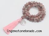 Details: Hand-knotted quartz mala necklaces: 108 8mm/10mm round purple strawberry quartz gemstone beads with 1 12mm guru bead and satin tassel & alloy charm (you can choose different tassels & charms) Item: GMN1886 Material: No.1(8mm: 108 8mm purple strawberry quartz beads, 12mm guru bead, satin tassel & charm No.2(10mm: 108 10mm purple strawberry quartz beads, 12mm guru bead, satin tassel & charm Color: See image Length (inch): Necklace length: No.1(8mm: approx 37 - 40 inches (Not including guru bead & tassel) No.2(10mm: approx 46 - 50 inches (Not including guru bead & tassel) Quantity Discount Pricing: 1 – 4: None 5 – 49: 95% 50 – 99: 90% 100+: 85% This mala is available in both 8mm and 10mm beads, The listed price is for 1 piece 8mm mala necklace