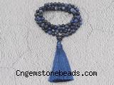 Details: Hand-knotted sodalite mala necklaces: 6mm round dalmatian jasper beads with 1 10mm guru bead and satin tassel (you can choose different colors) Item: GMN238 Material: Sodalite & Satin tassel Color: See image Length (inch): Necklace length: approx 28 - 31 inches (Not including guru bead & tassel) Tassel Lenght: 7cm Quantity Discount Pricing: 1 – 4: None 5 – 49: 95% 50 – 99: 90% 100+: 85% The listed price is for 1 piece mala necklace Each necklaces is handmade and hand-knotted with different gemstones. Please be aware that each necklace varies in stone pattern and color - Making it a truly one-of-a-kind, unique piece of jewelry. Custom orders are available upon request! If you see different stones you like/want incorporated into a mala necklace or you have any need, please contact us before you placing order or leave remark, and we will be happy to create a mala just for you! Mala necklace is worn on the neck or wrist while not in use. It may also serve as a nice accessory in everyday life or on some special occasions. Whether as a calming meditation guide or a beautiful, this necklace will be a great addition to your spiritual practice