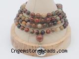 Details: Hand-knotted jasper mala necklaces: 108 6mm round picasso jasper beads with 1 10mm guru bead and charm (you can choose different charms) Item: GMN2408 Material: picasso jasper & charm Color: See image Length (inch): Necklace length: approx 28 - 31 inches(Not including guru bead & charm) Quantity Discount Pricing: 1 – 4: None 5 – 49: 95% 50 – 99: 90% 100+: 85% The listed price is for 1 piece necklace