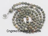 Details: Hand-knotted rhyolite mala necklaces: 6mm round rhyolite gemstone beads with 1 10mm guru bead and charm (you can choose different charms) Item: GMN2472 Material: Rhyolite & charm Color: See image Length (inch): approx 28 - 31 inches (Not including guru bead & charm) Quantity Discount Pricing: 1 – 4: None 5 – 49: 95% 50 – 99: 90% 100+: 85% The listed price is for 1 piece mala necklace Each necklaces is handmade and hand-knotted with different gemstones. Please be aware that each necklace varies in stone pattern and color - Making it a truly one-of-a-kind, unique piece of jewelry.