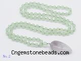 Details: Hand-knotted prehnite mala necklaces: 108 8mm/10mm round grade AA prehnite beads with amethyst pendant/12mm guru bead and amethyst pendant (you can choose different pendants, but there will be tiny different in shape & color, we will make the jewelry randomly according to our stock) Item: GMN4001 Material: No.1: 8mm: 108 8mm prehnite beads & amethyst pendant 10mm: 108 10mm prehnite beads & amethyst pendant No.2: 8mm: 108 8mm prehnite beads, 12mm guru bead & amethyst pendant 10mm: 108 10mm prehnite beads, 12mm guru bead & amethyst pendant Color: See image Length (inch): Necklace length: 8mm: approx 37 - 40 inches (Not including guru bead & pendant) 10mm: approx 46 - 50 inches (Not including guru bead & pendant) Pendants: approx 18*50mm – 25*60mm Quantity Discount Pricing: 1 – 4: None 5 – 49: 95% 50 – 99: 90% 100+: 85% This mala is available in both 8mm and 10mm beads, The listed price is for 1 piece 8mm mala necklace