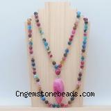 Details: Hand-knotted agate mala necklaces: 108 8mm/10mm round mixed banded agate beads with agate pendant/12mm guru bead and agate pendant (you can choose different pendants, but there will be tiny different in shape & color, we will make the jewelry randomly according to our stock) Item: GMN4011 Material: No.1: 8mm: 108 8mm mixed banded agate beads & agate pendant 10mm: 108 10mm mixed banded agate beads & agate pendant No.2: 8mm: 108 8mm mixed banded agate beads, 12mm guru bead & agate pendant 10mm: 108 10mm mixed banded agate beads, 12mm guru bead & agate pendant Color: See image Length (inch): Necklace length: 8mm: approx 37 - 40 inches (Not including guru bead & pendant) 10mm: approx 46 - 50 inches (Not including guru bead & pendant) Pendants: approx 18*50mm – 25*60mm Quantity Discount Pricing: 1 – 4: None 5 – 49: 95% 50 – 99: 90% 100+: 85% This mala is available in both 8mm and 10mm beads, The listed price is for 1 piece 8mm mala necklace