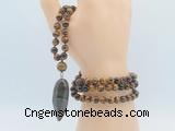 Details: Hand-knotted tiger eye mala necklaces: 108 8mm/10mm round yellow tiger eye beads with iron tiger pendant/12mm guru bead and iron tiger pendant (you can choose different pendants, but there will be tiny different in shape & color, we will make the jewelry randomly according to our stock) Item: GMN4039 Material: No.1: 8mm: 108 8mm yellow tiger eye beads & iron tiger pendant 10mm: 108 10mm yellow tiger eye beads & iron tiger pendant No.2: 8mm: 108 8mm yellow tiger eye beads, 12mm guru bead & iron tiger pendant 10mm: 108 10mm yellow tiger eye beads, 12mm guru bead & iron tiger pendant Color: See image Length (inch): Necklace length: 8mm: approx 37 - 40 inches (Not including guru bead & pendant) 10mm: approx 46 - 50 inches (Not including guru bead & pendant) Pendants: approx 18*50mm – 25*60mm Quantity Discount Pricing: 1 – 4: None 5 – 49: 95% 50 – 99: 90% 100+: 85% This mala is available in both 8mm and 10mm beads, The listed price is for 1 piece 8mm mala necklace