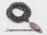 Details: Hand-knotted quartz mala necklaces: 108 8mm/10mm round garnet beads with strawberry quartz pendant/12mm guru bead and strawberry quartz pendant (you can choose different pendants, but there will be tiny different in shape & color, we will make the jewelry randomly according to our stock) Item: GMN4055 Material: No.1: 8mm: 108 8mm garnet beads & strawberry quartz pendant 10mm: 108 10mm garnet beads & strawberry quartz pendant No.2: 8mm: 108 8mm garnet beads, 12mm guru bead & strawberry quartz pendant 10mm: 108 10mm garnet beads, 12mm guru bead & strawberry quartz pendant Color: See image Length (inch): Necklace length: 8mm: approx 37 - 40 inches (Not including guru bead & pendant) 10mm: approx 46 - 50 inches (Not including guru bead & pendant) Pendants: approx 18*50mm - 25*60mm Quantity Discount Pricing: 1 – 4: None 5 – 49: 95% 50 – 99: 90% 100+: 85% This mala is available in both 8mm and 10mm beads, The listed price is for 1 piece 8mm mala necklace