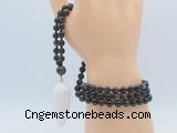 Details: Hand-knotted obsidia mala necklaces: 108 8mm/10mm round golden obsidian beads with white crystal pendant/12mm guru bead and white crystal pendant (you can choose different pendants, but there will be tiny different in shape & color, we will make the jewelry randomly according to our stock) Item: GMN4091 Material: No.1: 8mm: 108 8mm golden obsidian beads & white crystal pendant 10mm: 108 10mm golden obsidian beads & white crystal pendant No.2: 8mm: 108 8mm golden obsidian beads, 12mm guru bead & white crystal pendant 10mm: 108 10mm golden obsidian beads, 12mm guru bead & white crystal pendant Color: See image Length (inch): Necklace length: 8mm: approx 37 - 40 inches (Not including guru bead & pendant) 10mm: approx 46 - 50 inches (Not including guru bead & pendant) Pendants: approx 18*50mm - 25*60mm Quantity Discount Pricing: 1 – 4: None 5 – 49: 95% 50 – 99: 90% 100+: 85% This mala is available in both 8mm and 10mm beads, The listed price is for 1 piece 8mm mala necklace