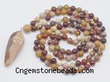 Details: Hand-knotted mookaite mala necklaces: 108 8mm/10mm round mookaite beads with agate pendant/12mm guru bead and agate pendant (you can choose different pendants, but there will be tiny different in shape & color, we will make the jewelry randomly according to our stock) Item: GMN4093 Material: No.1: 8mm: 108 8mm mookaite beads & agate pendant 10mm: 108 10mm mookaite beads & agate pendant No.2: 8mm: 108 8mm mookaite beads, 12mm guru bead & agate pendant 10mm: 108 10mm mookaite beads, 12mm guru bead & agate pendant Color: See image Length (inch): Necklace length: 8mm: approx 37 - 40 inches (Not including pendant) 10mm: approx 46 - 50 inches (Not including pendant) Pendants: approx 18*50mm - 25*60mm Quantity Discount Pricing: 1 – 4: None 5 – 49: 95% 50 – 99: 90% 100+: 85% This mala is available in both 8mm and 10mm beads, The listed price is for 1 piece 8mm mala necklace