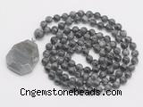 GMN5205 Hand-knotted 8mm, 10mm grey agate 108 beads mala necklace with pendant