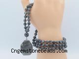 GMN4887 Hand-knotted 8mm, 10mm golden obsidian 108 beads mala necklace with pendant