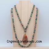 Details: Hand-knotted agate mala necklaces: 108 8mm/10mm round Indian agate beads with agate pendant/12mm guru bead and agate pendant (you can choose different pendants, but there will be tiny different in shape & color, we will make the jewelry randomly according to our stock) Item: GMN4670 Material: No.1: 8mm: 108 8mm Indian agate beads & agate pendant 10mm: 108 10mm Indian agate beads & agate pendant No.2: 8mm: 108 8mm Indian agate beads, 12mm guru bead & agate pendant 10mm: 108 10mm Indian agate beads, 12mm guru bead & agate pendant Color: See image Length (inch): Necklace length: 8mm: approx 37 - 40 inches (Not including pendant) 10mm: approx 46 - 50 inches (Not including pendant) Quantity Discount Pricing: 1 – 4: None 5 – 49: 95% 50 – 99: 90% 100+: 85% This mala is available in both 8mm and 10mm beads, The listed price is for 1 piece 8mm mala necklace