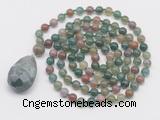 Details: Hand-knotted agate mala necklaces: 108 8mm/10mm round Indian agate beads with 1 12mm guru bead and moss agate pendant (you can choose different pendants, but there will be tiny different in shape & color, we will make the jewelry randomly according to our stock) Item: GMN4849 Material: 8mm: 108 8mm Indian agate beads, 12mm guru bead & moss agate pendant 10mm: 108 10mm Indian agate beads, 12mm guru bead & moss agate pendant Color: See image Length (inch): Necklace length: 8mm: approx 37 - 40 inches (Not including guru bead & pendant) 10mm: approx 46 - 50 inches (Not including guru bead & pendant) Pendants: approx 18*35mm – 28*40mm Quantity Discount Pricing: 1 – 4: None 5 – 49: 95% 50 – 99: 90% 100+: 85% This mala is available in both 8mm and 10mm beads, The listed price is for 1 piece 8mm mala necklace