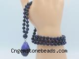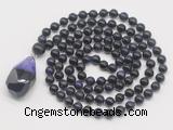 Hand-knotted tiger eye mala necklaces: 108 8mm/10mm round purple tiger eye beads with 1 12mm guru bead and agate pendant (you can choose different pendants, but there will be tiny different in shape & color, we will make the jewelry randomly according to our stock)