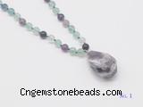 Details: Hand-knotted fluorite mala necklaces: 108 8mm/10mm round fluorite beads with amethyst pendant/12mm guru bead and amethyst pendant (you can choose different pendants, but there will be tiny different in shape & color, we will make the jewelry randomly according to our stock) Item: GMN4903 Material: No.1: 8mm: 108 8mm fluorite beads & amethyst pendant 10mm: 108 10mm fluorite beads & amethyst pendant No.2: 8mm: 108 8mm fluorite beads, 12mm guru bead & amethyst pendant 10mm: 108 10mm fluorite beads, 12mm guru bead & amethyst pendant Color: See image Length (inch): Necklace length: 8mm: approx 37 - 40 inches (Not including guru bead & pendant) 10mm: approx 46 - 50 inches (Not including guru bead & pendant) Pendants: approx 18*35mm - 28*40mm Quantity Discount Pricing: 1 - 4: None 5 - 49: 95% 50 - 99: 90% 100+: 85% This mala is available in both 8mm and 10mm beads, The listed price is for 1 piece 8mm mala necklace