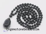 Details: Hand-knotted agate mala necklaces: 108 8mm/10mm round black agate beads with agate pendant/12mm guru bead and agate pendant (you can choose different pendants, but there will be tiny different in shape & color, we will make the jewelry randomly according to our stock) Item: GMN4915 Material: No.1: 8mm: 108 8mm black agate beads & agate pendant 10mm: 108 10mm black agate beads & agate pendant No.2: 8mm: 108 8mm black agate beads, 12mm guru bead & agate pendant 10mm: 108 10mm black agate beads, 12mm guru bead & agate pendant Color: See image Length (inch): Necklace length: 8mm: approx 37 - 40 inches (Not including guru bead & pendant) 10mm: approx 46 - 50 inches (Not including guru bead & pendant) Pendants: approx 18*35mm - 28*40mm Quantity Discount Pricing: 1 - 4: None 5 - 49: 95% 50 - 99: 90% 100+: 85% This mala is available in both 8mm and 10mm beads, The listed price is for 1 piece 8mm mala necklace